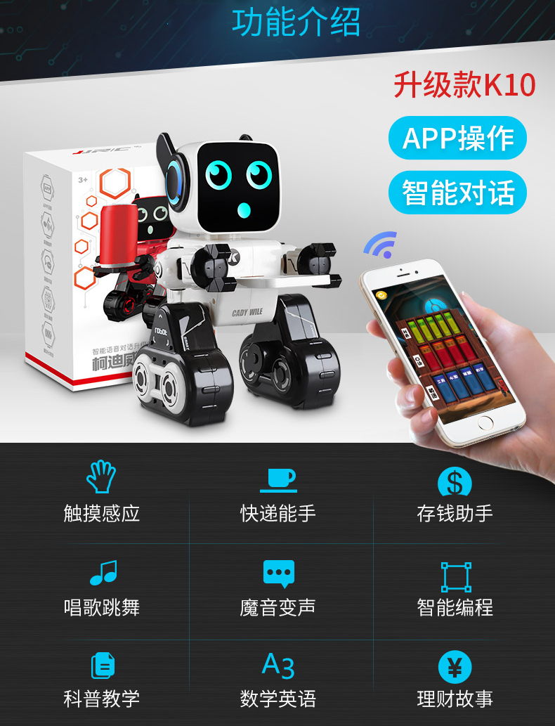 儿童早教启智可对话机器人智能声控电动遥控玩具3-8岁男孩超大升级版会走路会跳舞的会说话感应机器人 升级版K10语音对话APP遥控-白色